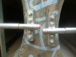 It required a tried and tested design from Murray Powell at Optimal Stormwater, to be customised for the site, fabricated, galvanised and installed. The “Fail Open†exclusion bars are hinged and essentially locked in place with a piece of sacrificial polymer tube. When the pressure gets too much the thin polymer tube will give way and the exclusions bars open right up, and provide minimal hydraulic resistance for the flows. Replacement polymer tubing costs about $1, and replacements are supplied by Optimal Stormwater.
